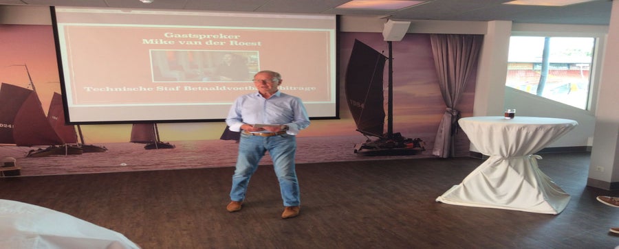 Vervolgens was het woord aan Mike van der Roest, bij de KNVB o.a. projectleider van de ontwikkelingen rond video-arbitrage. Aan de hand van actuele wedstrijdbeelden liet hij ons kennisnemen van de gang van zaken en zich daarbij voordoende dilemma's van de video-arbitrage. De diverse vragen en meningen maakten duidelijk dat het onderwerp onder de aanwezigen leeft en de presentatie door Mike zeer op prijs werd gesteld.