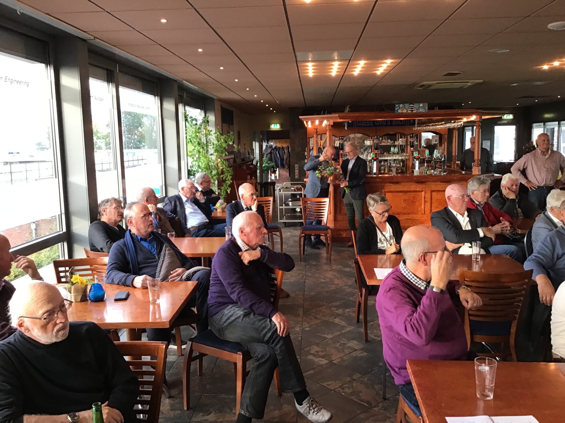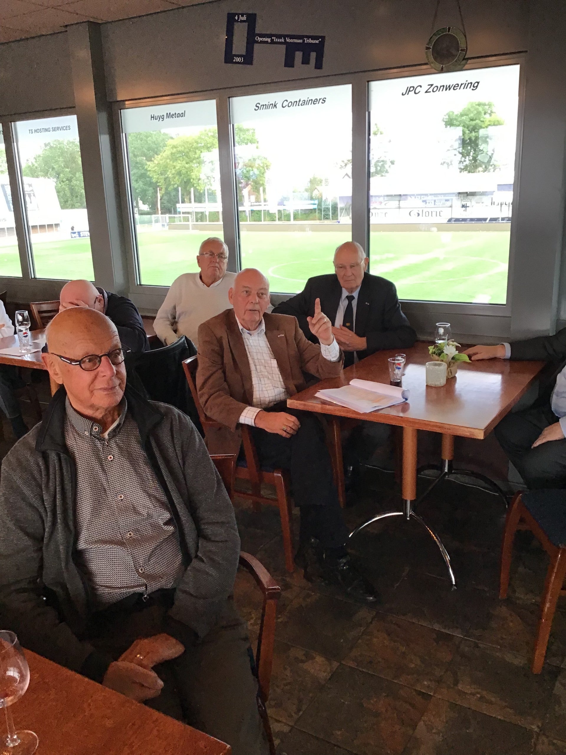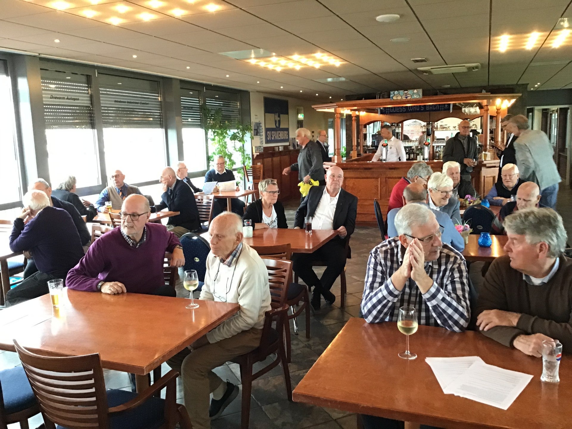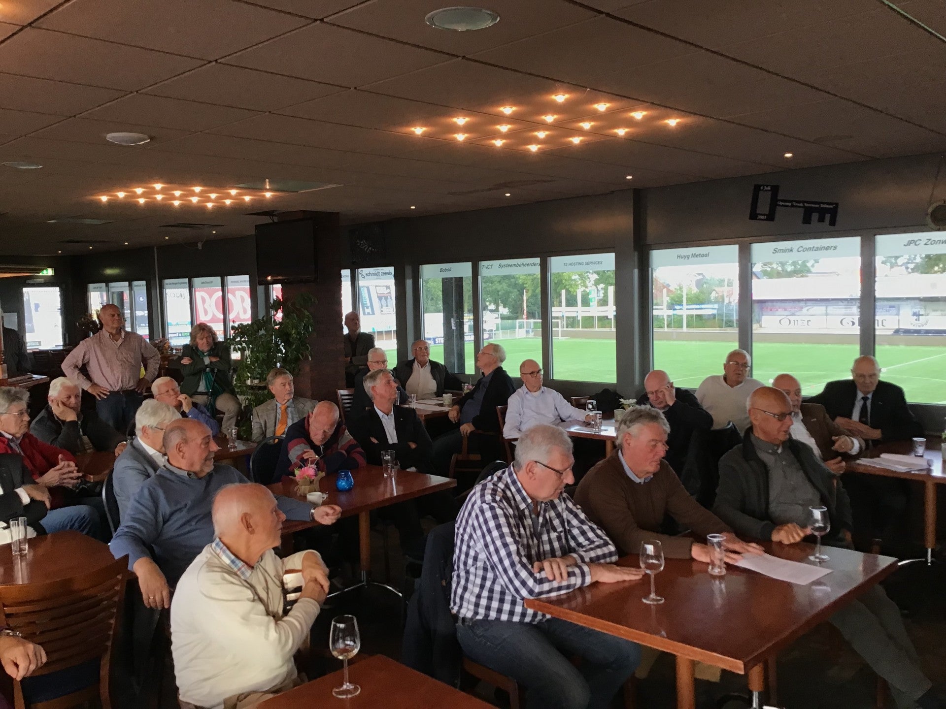 40 leden waren op 14 oktober jl naar Spakenburg gekomen voor de jaarlijkse bijeenkomst, deze keer bij de gelijknamige Sportvereniging. Na een welkom door bestuurslid en organisator Frans Vermeij en voorzitter Jaap Rooker, was het woord aan gastheer Marc Schoonebeek. In een gloedvol en duidelijk betoog schetste hij een toekomstbeeld voor de SV Spakenburg. Een moderne en multifunctionele accommodatie moet de basis vormen voor de brede maatschappelijke functie en activiteiten die de vereniging vervult en dat wil blijven doen. Het vergt een behoorlijke financiële investering, maar e.e.a. wordt positief tegemoet gezien. Gelet op de reacties zullen de aanwezigen de komende tijd de ontwikkelingen zeker met belangstelling volgen.