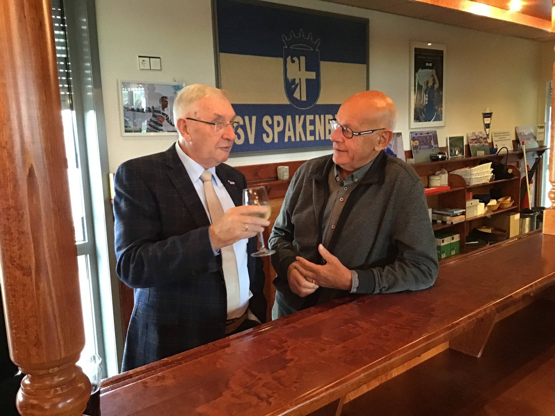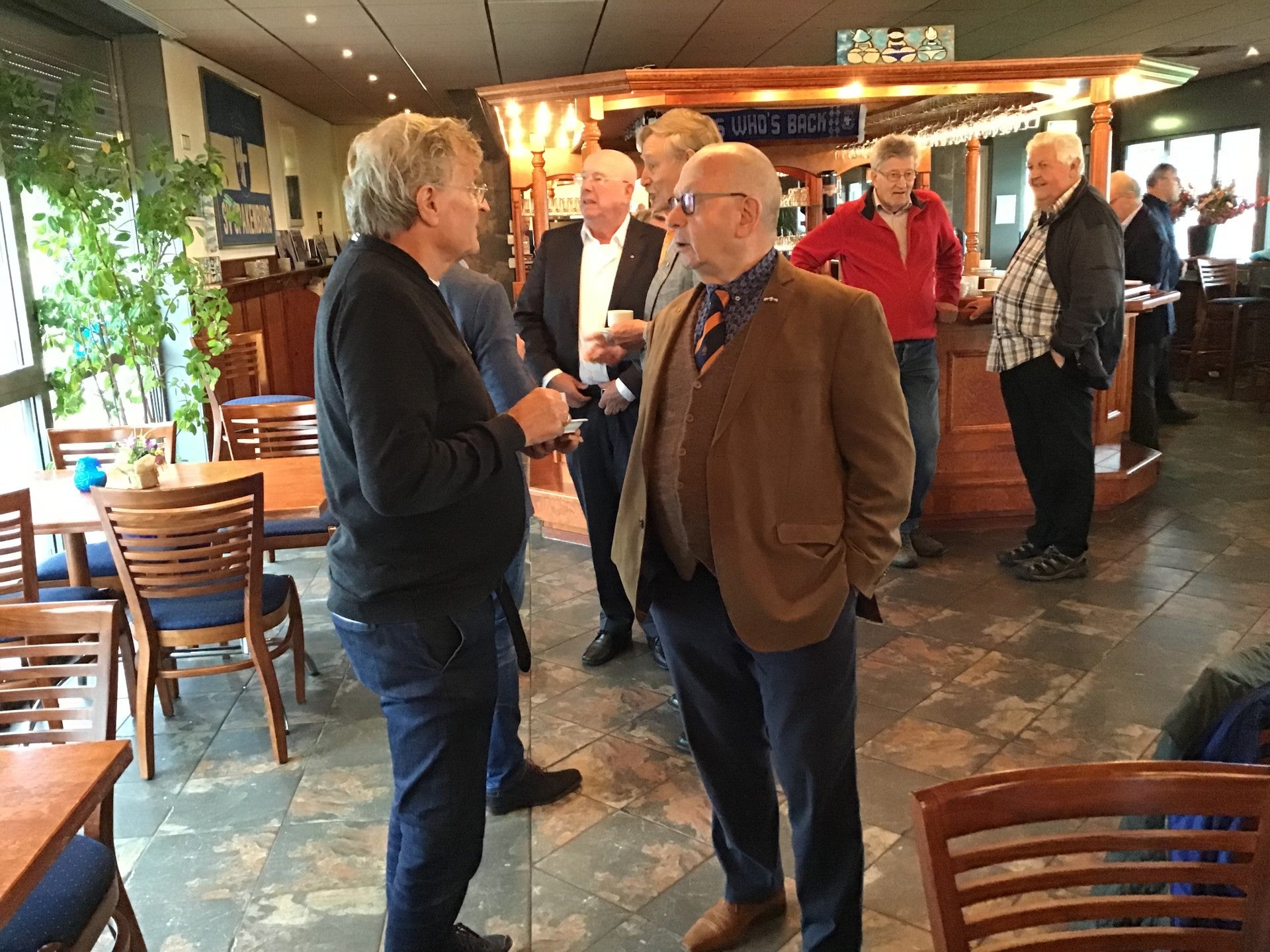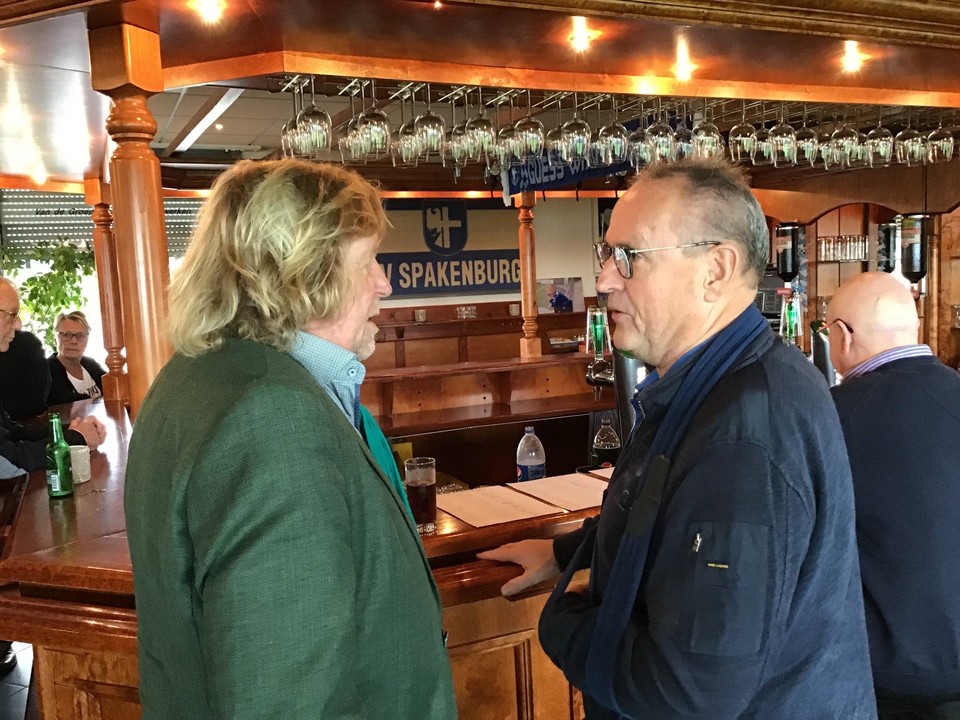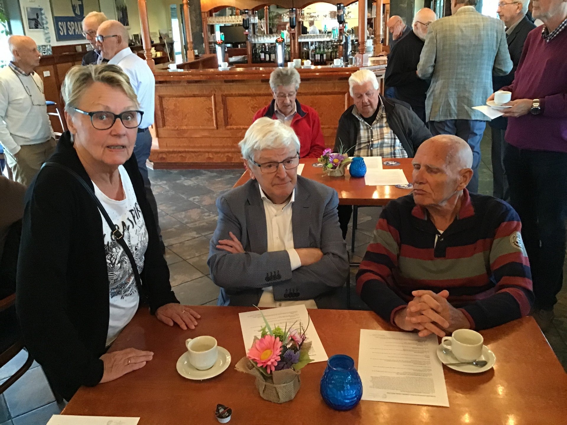 40 leden waren op 14 oktober jl naar Spakenburg gekomen voor de jaarlijkse bijeenkomst, deze keer bij de gelijknamige Sportvereniging. Na een welkom door bestuurslid en organisator Frans Vermeij en voorzitter Jaap Rooker, was het woord aan gastheer Marc Schoonebeek. In een gloedvol en duidelijk betoog schetste hij een toekomstbeeld voor de SV Spakenburg. Een moderne en multifunctionele accommodatie moet de basis vormen voor de brede maatschappelijke functie en activiteiten die de vereniging vervult en dat wil blijven doen. Het vergt een behoorlijke financiële investering, maar e.e.a. wordt positief tegemoet gezien. Gelet op de reacties zullen de aanwezigen de komende tijd de ontwikkelingen zeker met belangstelling volgen.