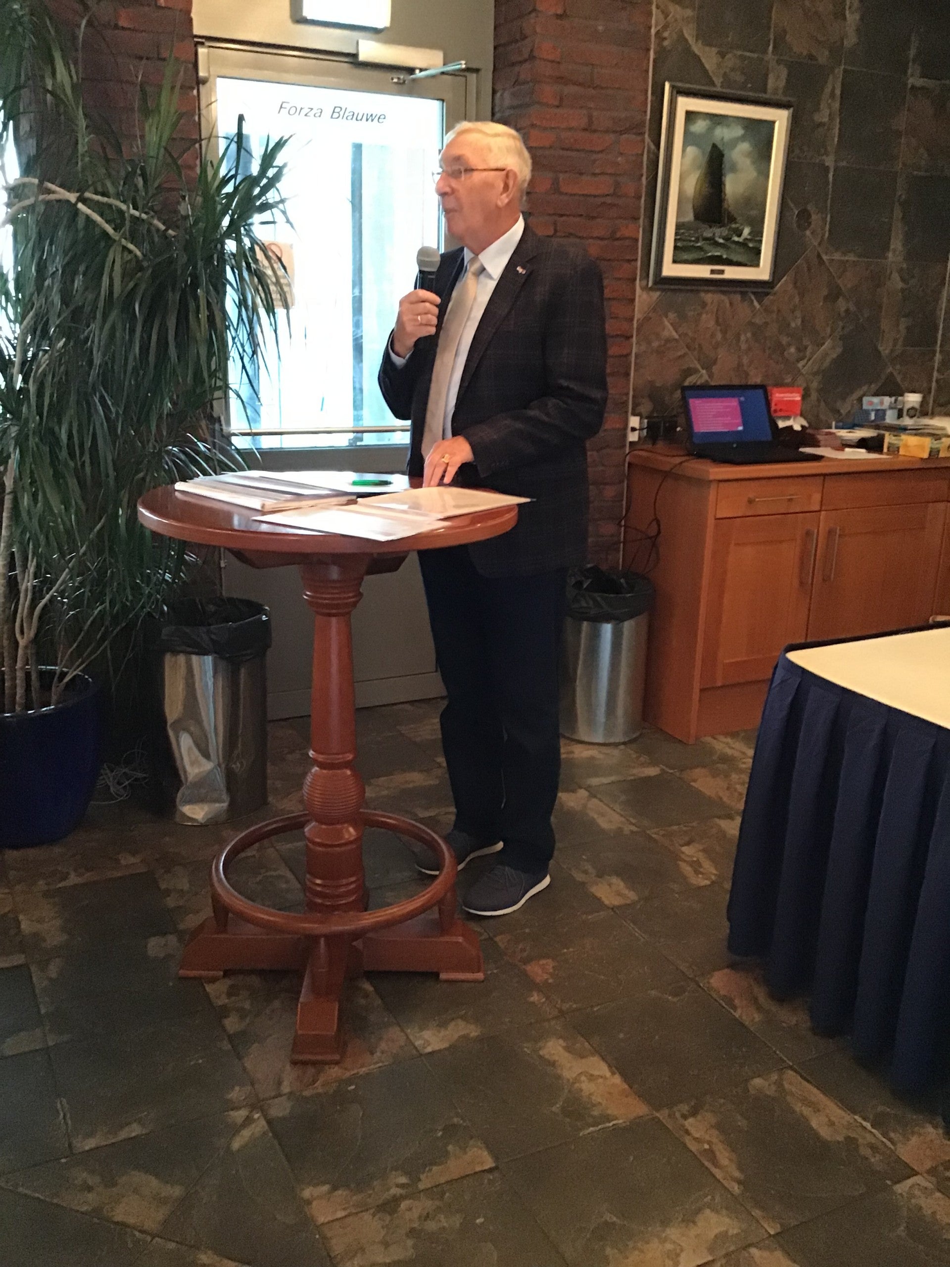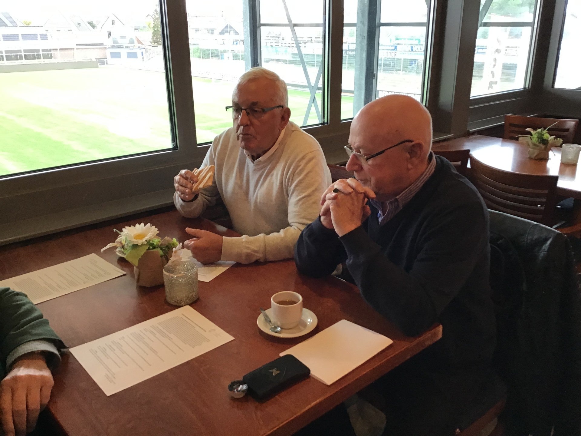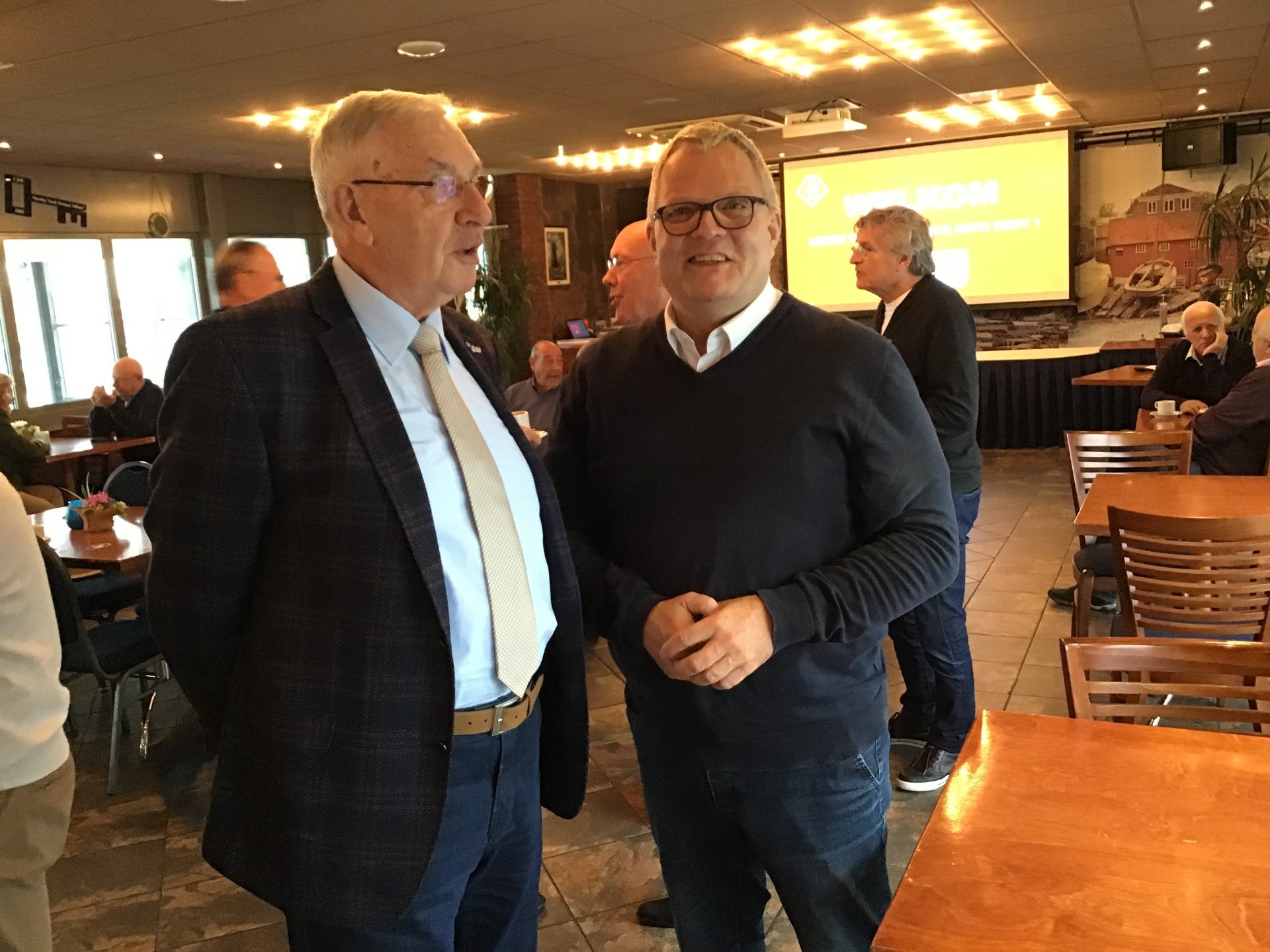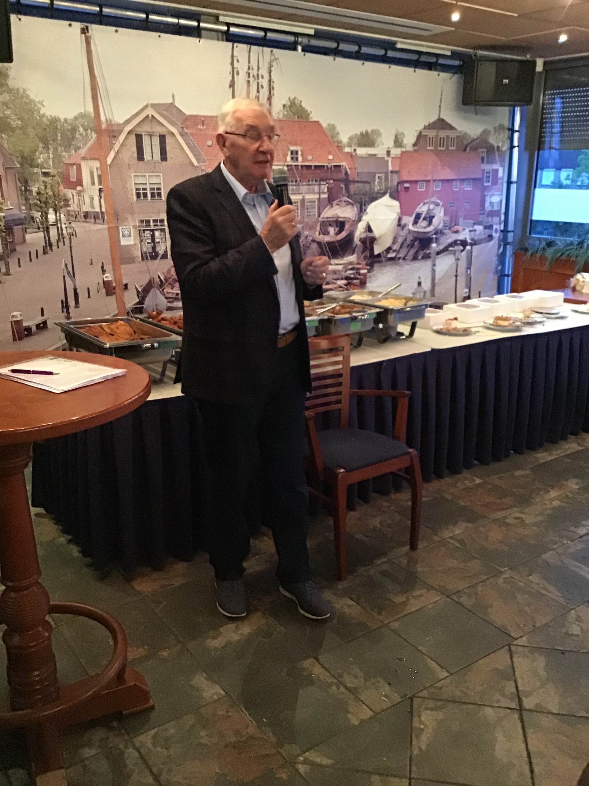 40 leden waren op 14 oktober jl naar Spakenburg gekomen voor de jaarlijkse bijeenkomst, deze keer bij de gelijknamige Sportvereniging. Na een welkom door bestuurslid en organisator Frans Vermeij en voorzitter Jaap Rooker, was het woord aan gastheer Marc Schoonebeek. In een gloedvol en duidelijk betoog schetste hij een toekomstbeeld voor de SV Spakenburg. Een moderne en multifunctionele accommodatie moet de basis vormen voor de brede maatschappelijke functie en activiteiten die de vereniging vervult en dat wil blijven doen. Het vergt een behoorlijke financiële investering, maar e.e.a. wordt positief tegemoet gezien. Gelet op de reacties zullen de aanwezigen de komende tijd de ontwikkelingen zeker met belangstelling volgen.